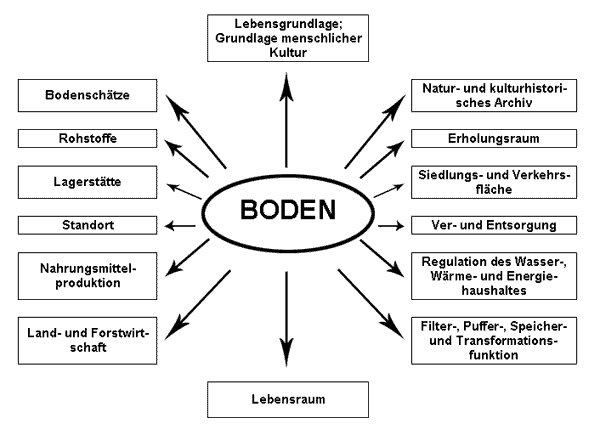 Lebensgrundlage und Lebensraum für Menschen, Tiere, Pflanzen und Bodenorganismen, |