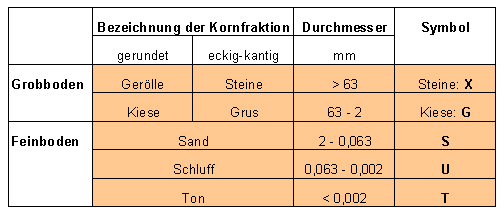 (Korndurchmesser < 2 mm). Die genaue Einteilung und Bezeichnung