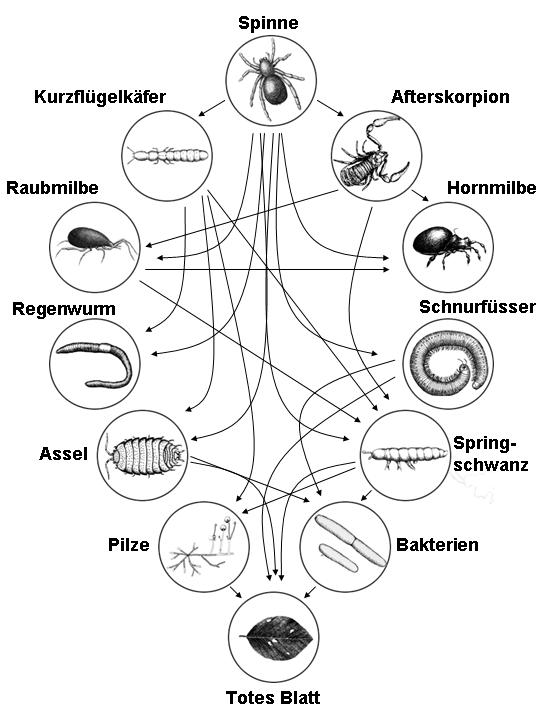 (Saprophagen) ernähren, z.B. Springschwänze, Milben