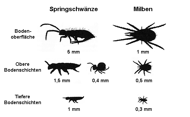 Einige Bodentiergruppen sind im Boden mit