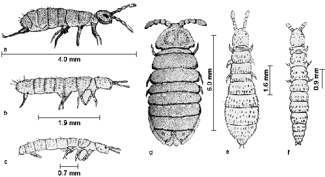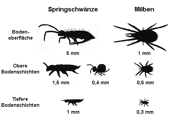 differenzieren Insbesondere bei den zahlreich im Boden vertretenen Springschwanzarten lassen sich unterschiedliche Lebensformtypen beobachten, die an die speziellen Lebensbedingungen in den verschiedenen Bodenschichten unterschiedlich angepasst sind (s. Grafik).