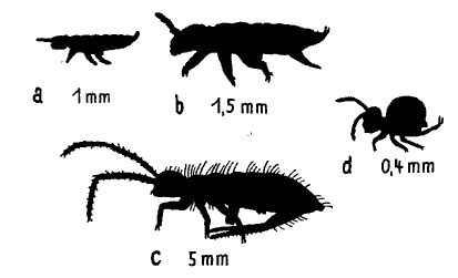 meist nur 1-2 mm lange zarthäutige Tiere, die zu den flügellosen