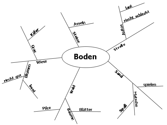 weitere Astgabeln abgehen. An jeden Ast zu dem weitere Gedanken