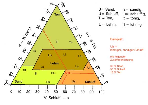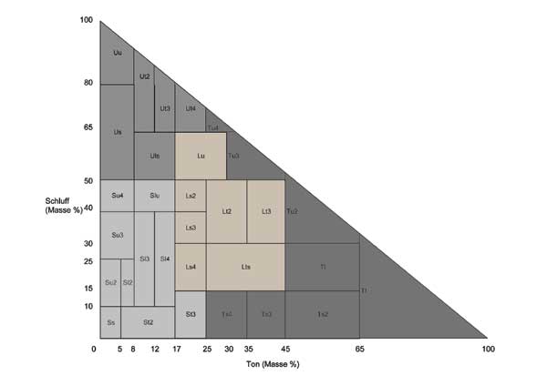 Sand, Schluff und Ton einnimmt (s. Bestimmung