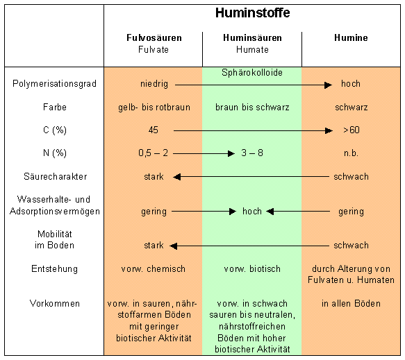Einteilung und Eigenschaften der Huminstoffe