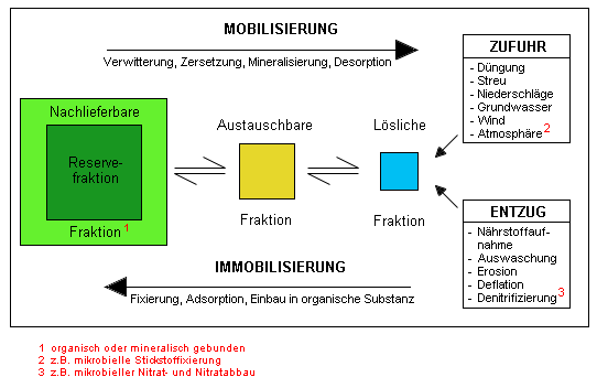 Bodenbestandteilen gebunden sind, gehören zur Reservefraktion . Sie werden erst durch intensive Verwitterungs- und Zersetzungsprozesse