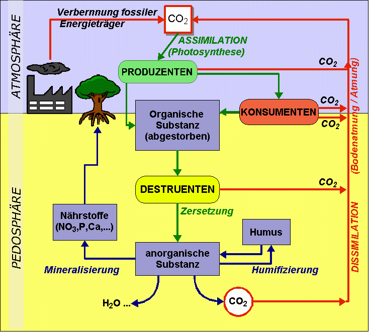 und der Biosphäre. Dieser Prozess wird als Stoffkreislauf