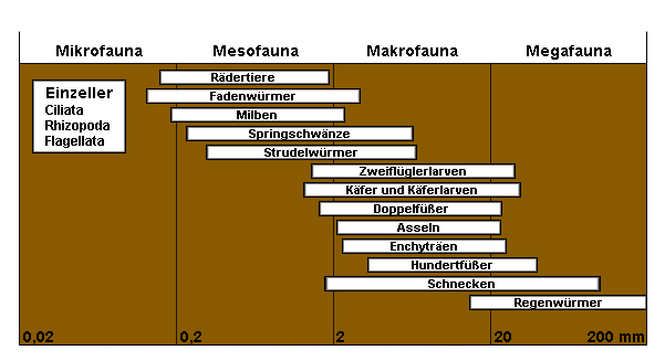 wird die Bodenfauna in 4 Gruppen untergliedert (s. Grafik):