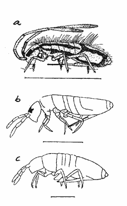 meist nur 1-2 mm lange zarthäutige Tiere, die zu den flügellosen