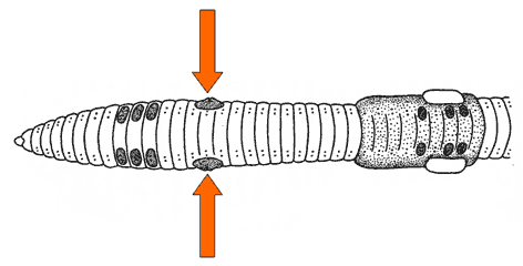 männlicher Porus 1 am 13. Segment, olivgrüne Würmer,